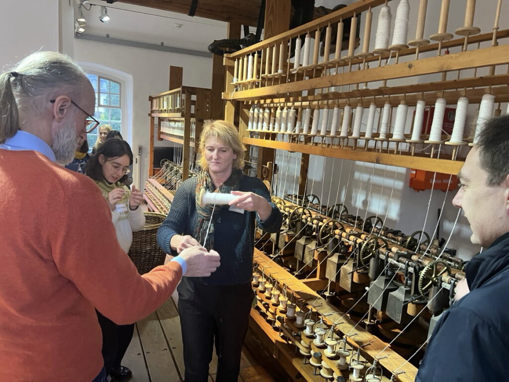 Ein Rundgang durch die, aktuell aufgrund von Umbaumaßnahmen geschlossene „Hohe Fabrik“ ermöglichte Einblicke in die Ausstellungsräume und die hier ursprünglich ansässige Baumwollspinnerei. Gleichzeitig konnten vor Ort das geplante Ausstellungskonzept vorgestellt und der für die VR-Anwendung angedachte Raum besichtigt werden.